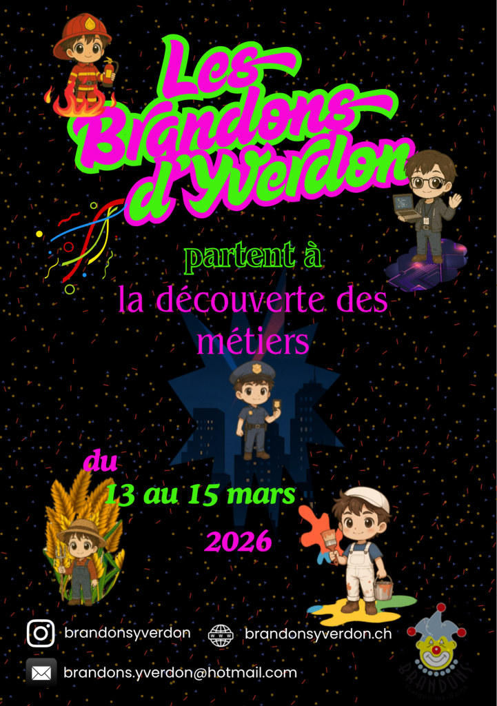 Nous avons le plaisir de vous annoncer nos prochains Brandons du 13 au 15 mars 2026 avec le thème "Les Brandons d'Yverdon partent à la découverte des métiers" Galerie photo de l'édition 2024